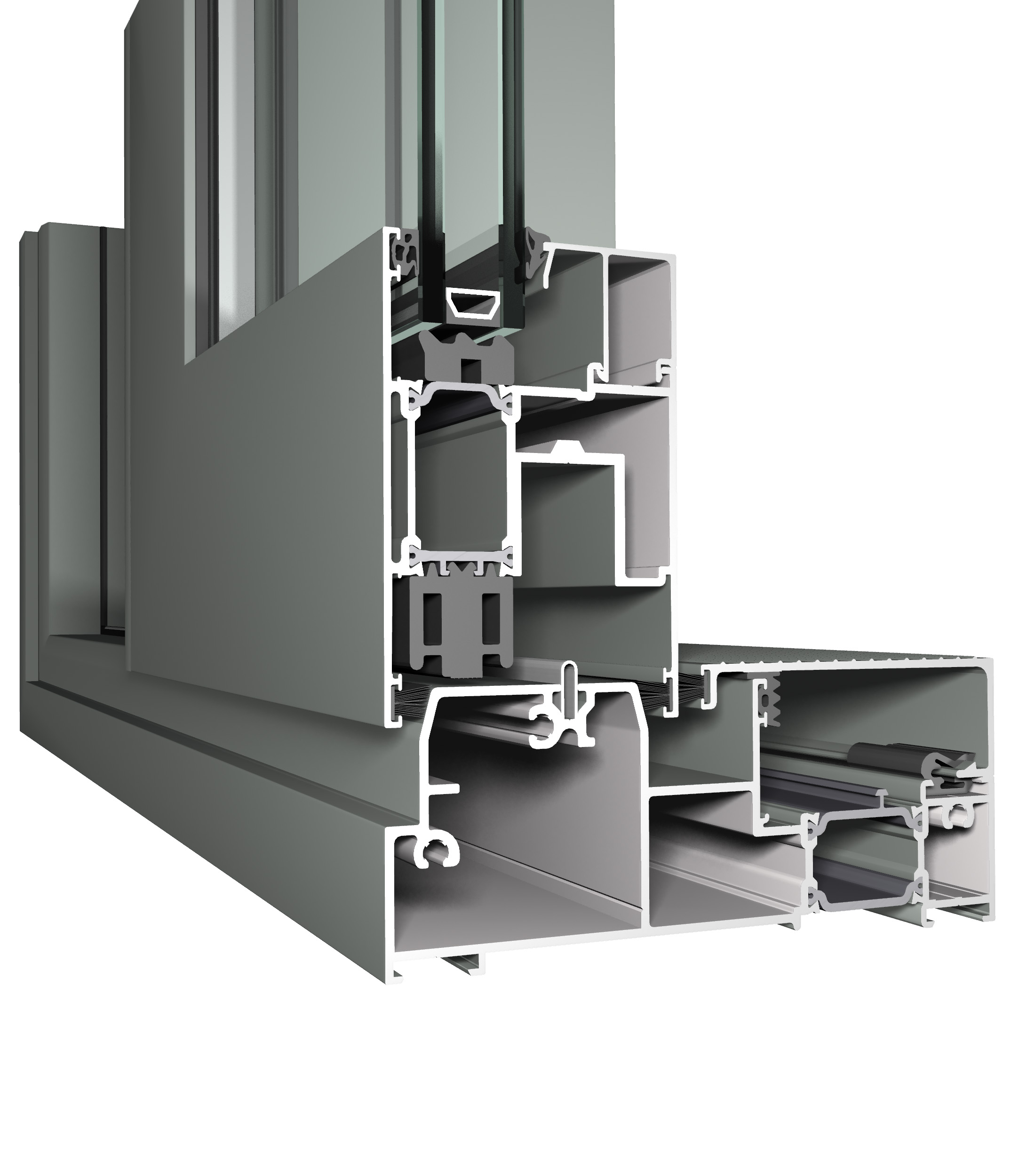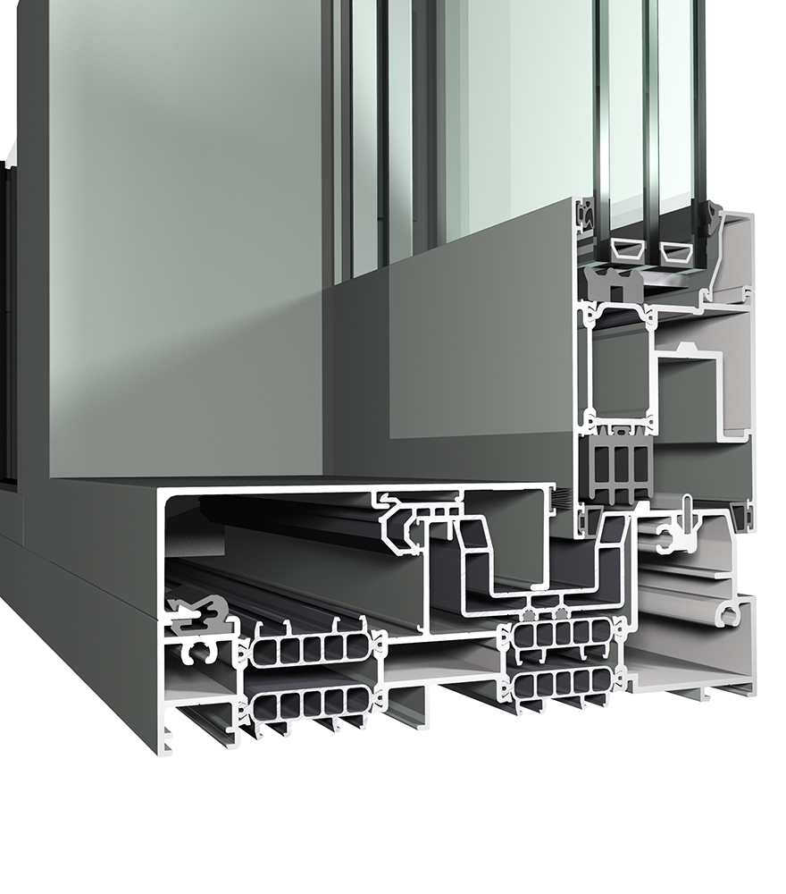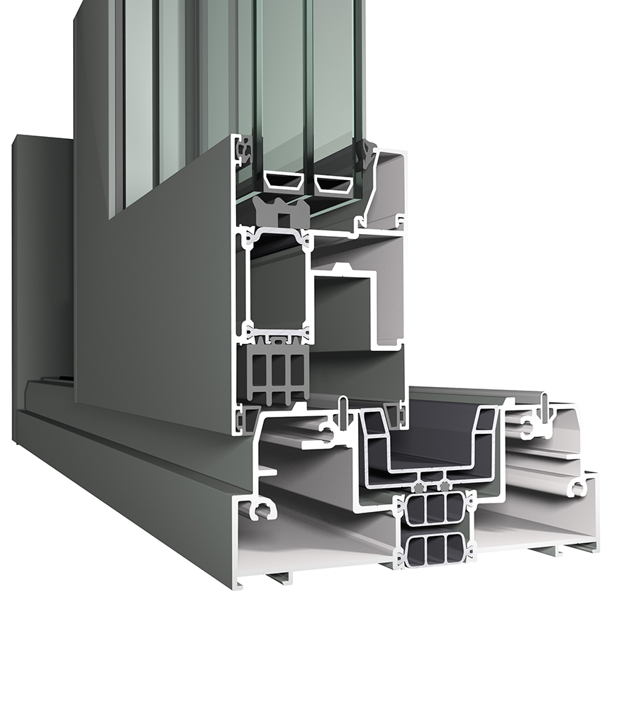 Durch sein einzigartiges Isolierkonzept bietet das System extreme Stabilität und erhöhte Schlagregen- und Luftdichtigkeit und eignet sich perfekt zur Dreifachverglasung.